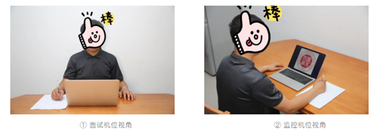 提醒:(1)屏蔽语音通话功能(2)关闭监控机位的麦克风(3)取消音视频通话邀请通知(4)关闭其它App消息通知(5)清理桌面,桌面上只允许摆放面试设备、签字笔和A4空白纸。