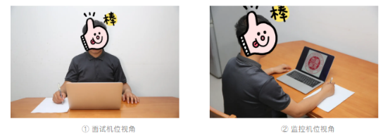 提醒:(1)屏蔽语音通话功能;(2)关闭监控机位的麦克风;(3)取消音视频通话邀请通知;(4)关闭其它App消息通知;(5)清理桌面,桌面上只允许摆放面试设备、签字笔和A4空白纸。