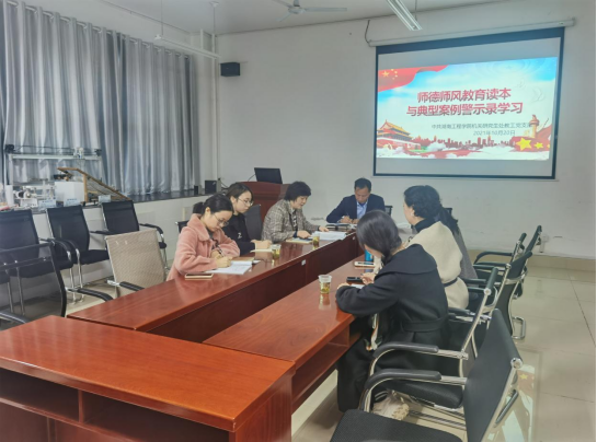 会上,任振华首先组织研究生教工党员认真学习《师德师风教育读本》。任振华要求全体教职工党员要学深悟透,内化于心、外化于行,养成行动自觉,增强”四个意识”、坚定“四个自信”、做到“两个维护”,弘扬高尚师德,不忘立德树人初心,牢记为党育人,为国育才使命。接着,任振华带领全体教工党员学习了《2021廉政警示录》,通过反面典型案例,强调当前抓好师德师风建设的重要性和必要性,要求本支部教职工党员提高认识,坚定理想信念,培养良好道德情操,扎实专业学识,做德才兼备,有仁爱之心的好老师。
