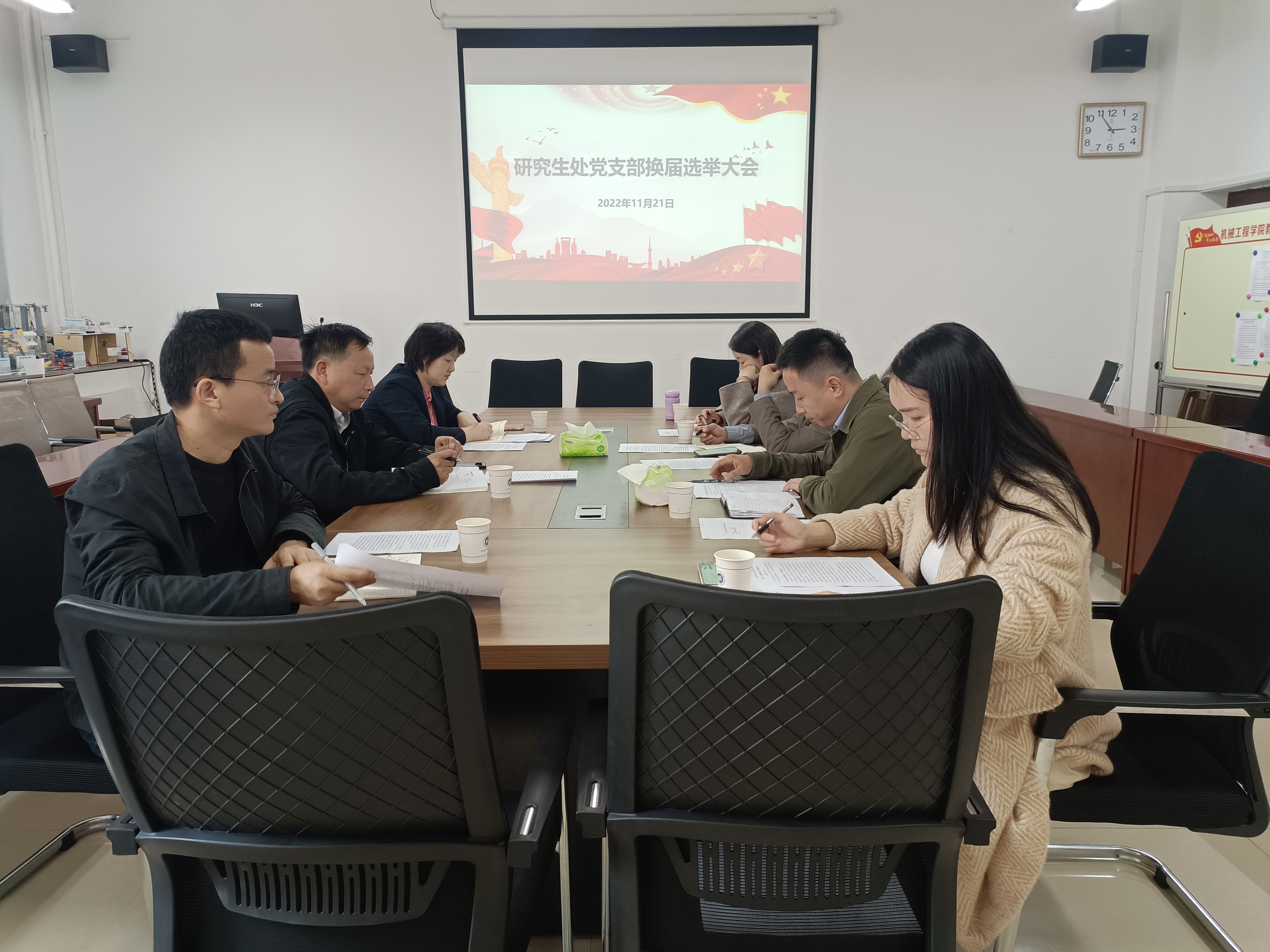 为了进一步加强党的基层组织建设,增强党组织战斗力,促进支部更好的服务研究生教育管理和培养的各项工作。11月21日下午2:40,研究生处党支部于机械楼308会议室召开支部换届大会,会议由支部书记任振华同志主持,支部全体党员参加。