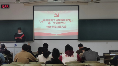 研究生学生第一党支部预备党员转正大会于2022年11月26日在教学楼B308召开。本次大会讨论宁顺兴同志预备党员转为正式党员的相关事宜,大会由组织委员唐海哲主持,支部全体党员参加此次大会。