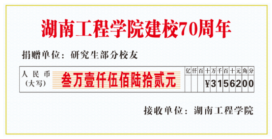 金秋十月,母校七十周年华诞在即,怀着对母校浓浓的情谊,我校优秀研究生校友自发组织、倡议向母校捐赠,助力母校发展,表达对母校的感恩和祝福。