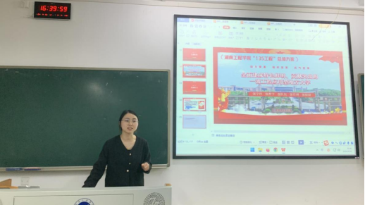会上,杨露雯围绕学校“135”工程实施方案以“新质生产力与高质量发展”为主题为全体研究生党员上了一堂微党课,详细地向大家介绍了学校“135”工程实施方案。她讲到学校正全面深化综合改革,我们研究生既要把握改革带来的机会,同时激励大家用自己的专业知识和能力携手共绘湖工高质量发展新篇章。